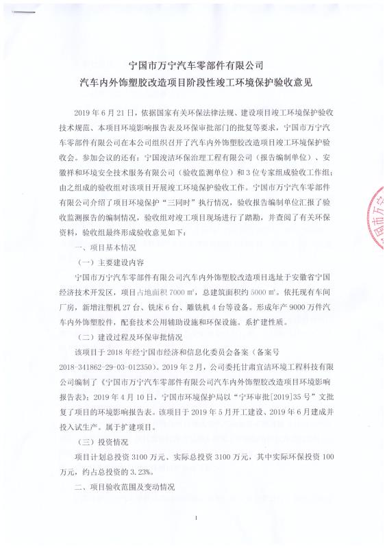 汽车内外饰塑胶改造项目竣工环境保护验收监测报告表